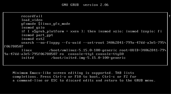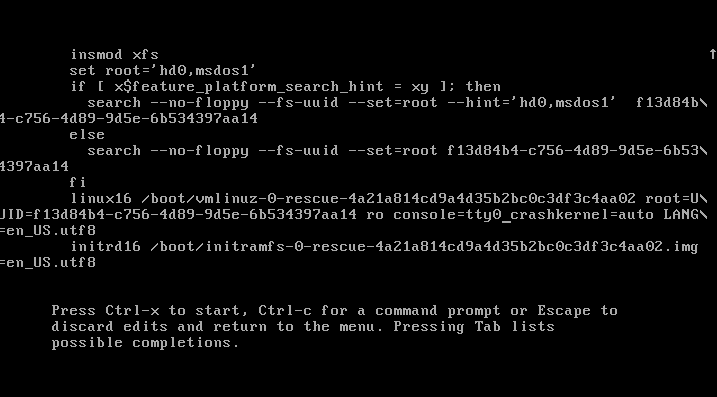 부팅시 커널 선택창에서 e를 눌러 커널 편집모드로 진입합니다.