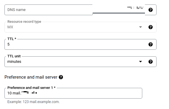 gcp의 dns서비스를 기준으로 mx레코드를 생성하면