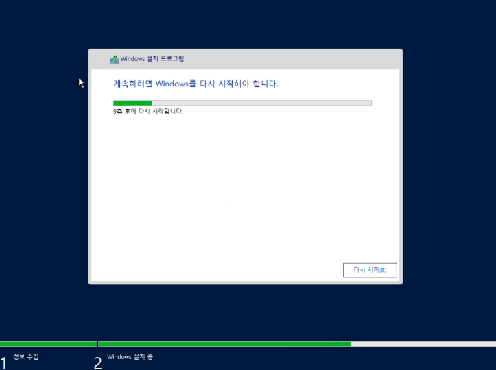 다시 시작을 클릭하여 서버를 재시작 합니다.