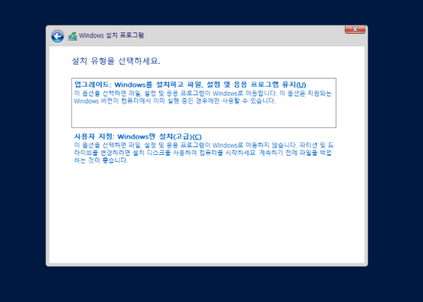 버전 업그레이드를 할 경우 업그레이드를 선택하면 됩니다.