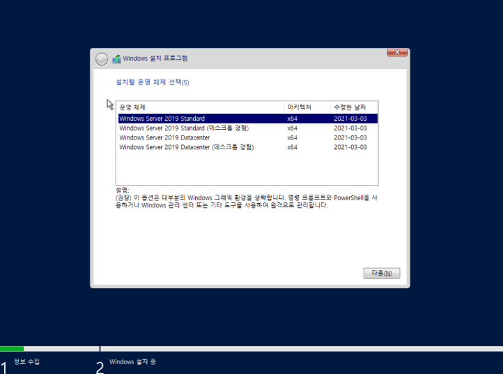 Windows server 2019를 설치해 보겠습니다.